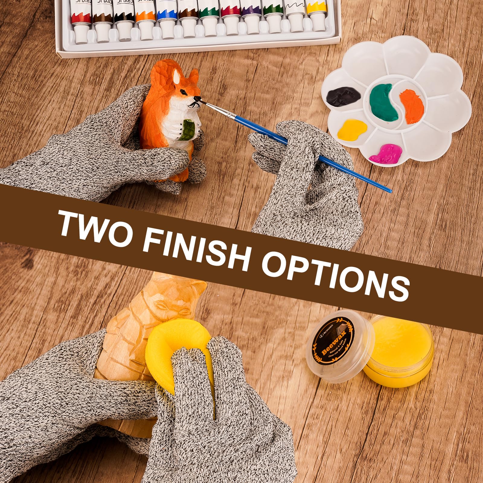 - 【Two Finish Choices】This wood carving kit comes with 12 - color pigments and beewax, providing two distinct finishes. Whether you like the natural elegance of beeswax or the vivid hues of pigments, you've got all you need to beautify your artworks.